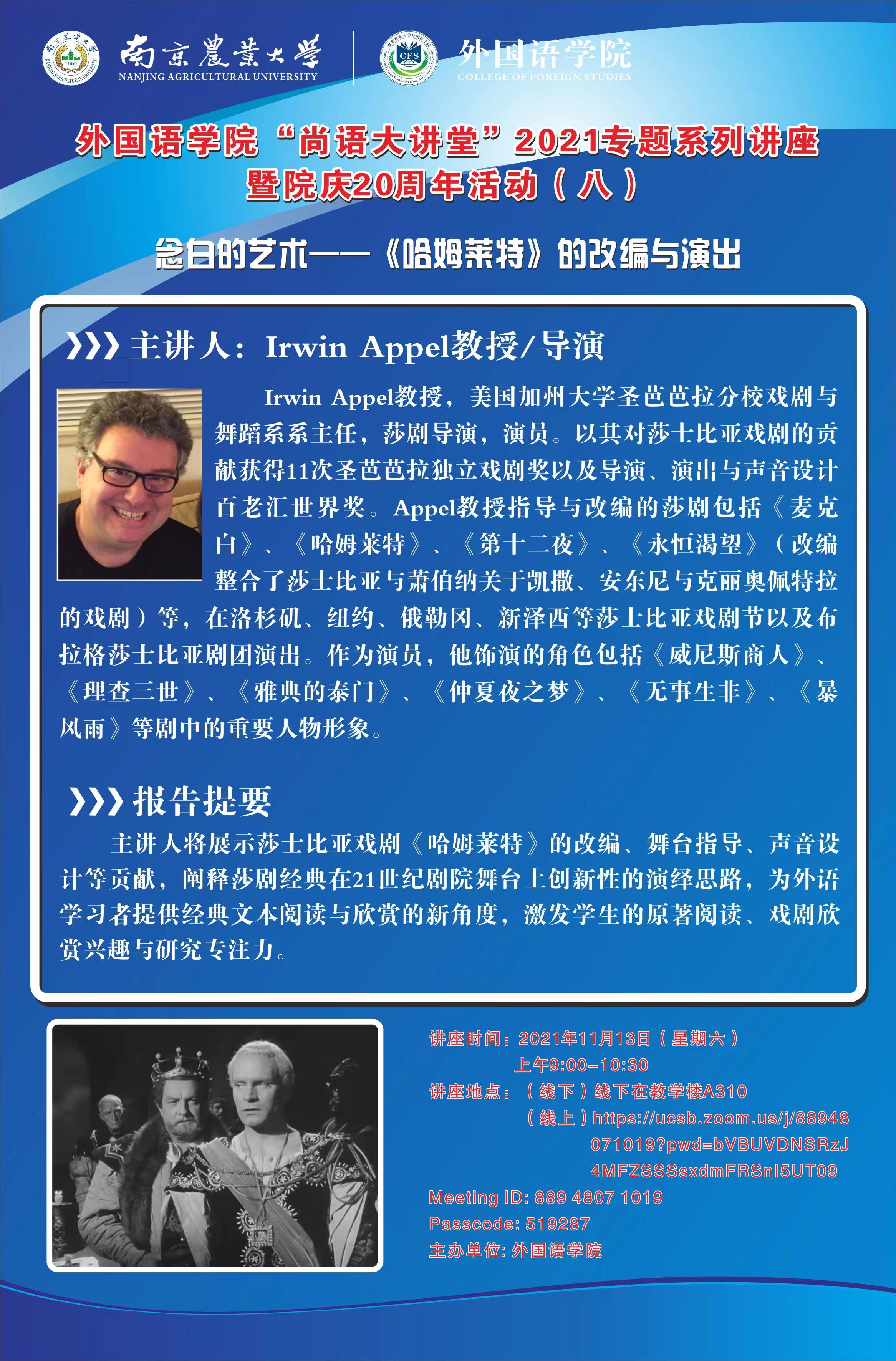 上一篇:3003新葡的京集团网址“尚语大讲堂”2021专题系列讲座“好即是坏,坏即是好”——莎士比亚戏剧《麦克白》的改...