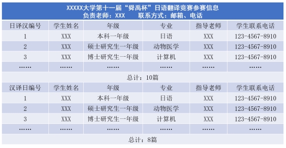 2.本次竞赛日译汉、汉译日分别设立一、二、三等奖;设立优秀指导老师奖;设立优秀组织奖。