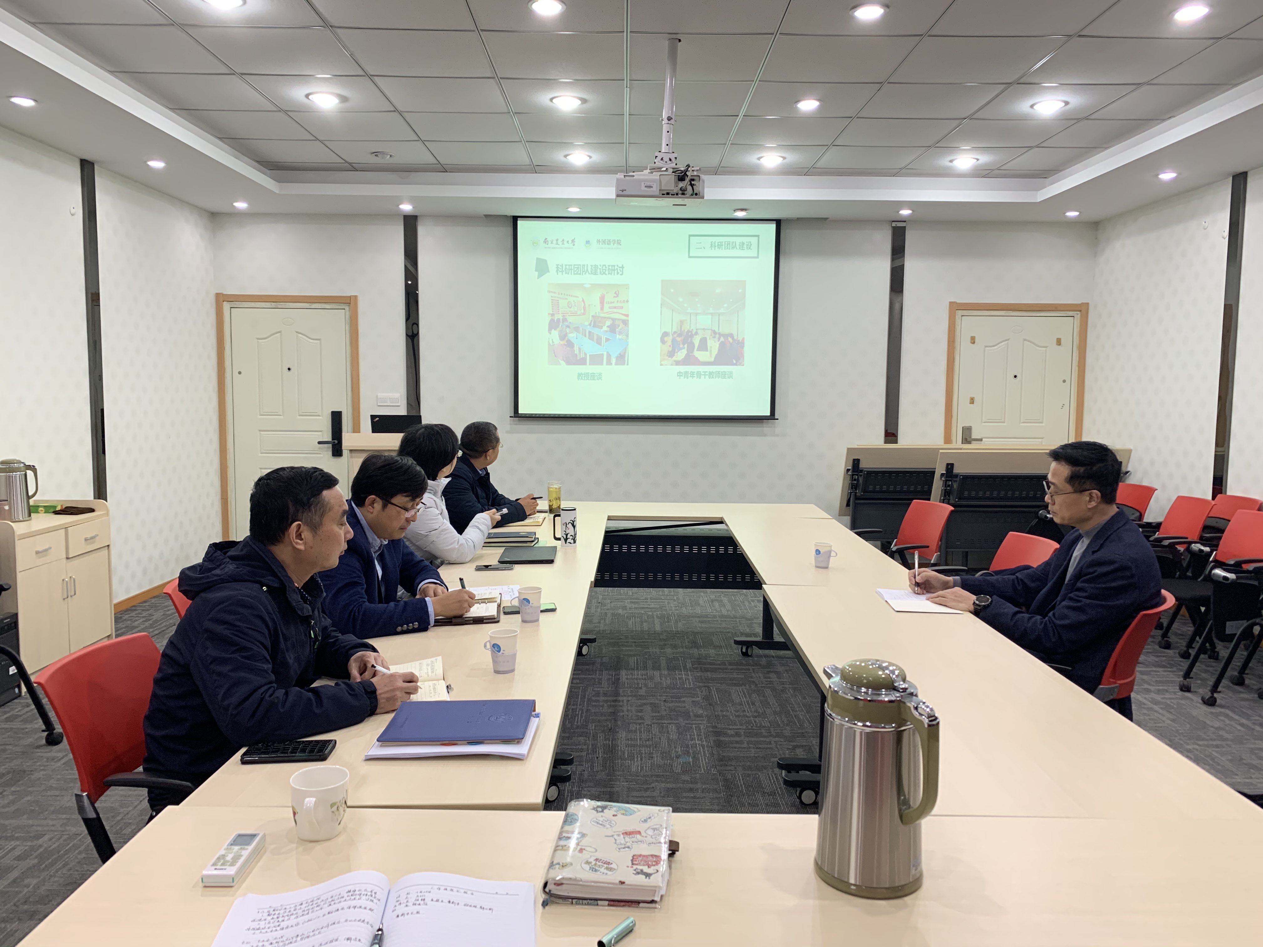 11月25日下午,校党委常委、副校长胡锋来新葡的京官网检查指导工作,曹新宇副院长代表学院汇报了本学期以来学院在党建思政、人才培养、团队建设、科学研究等方面的工作进展和主要举措,院党委书记朱筱玉就“双带头人”支部换届和人才队伍建设等方面的情况做了汇报。