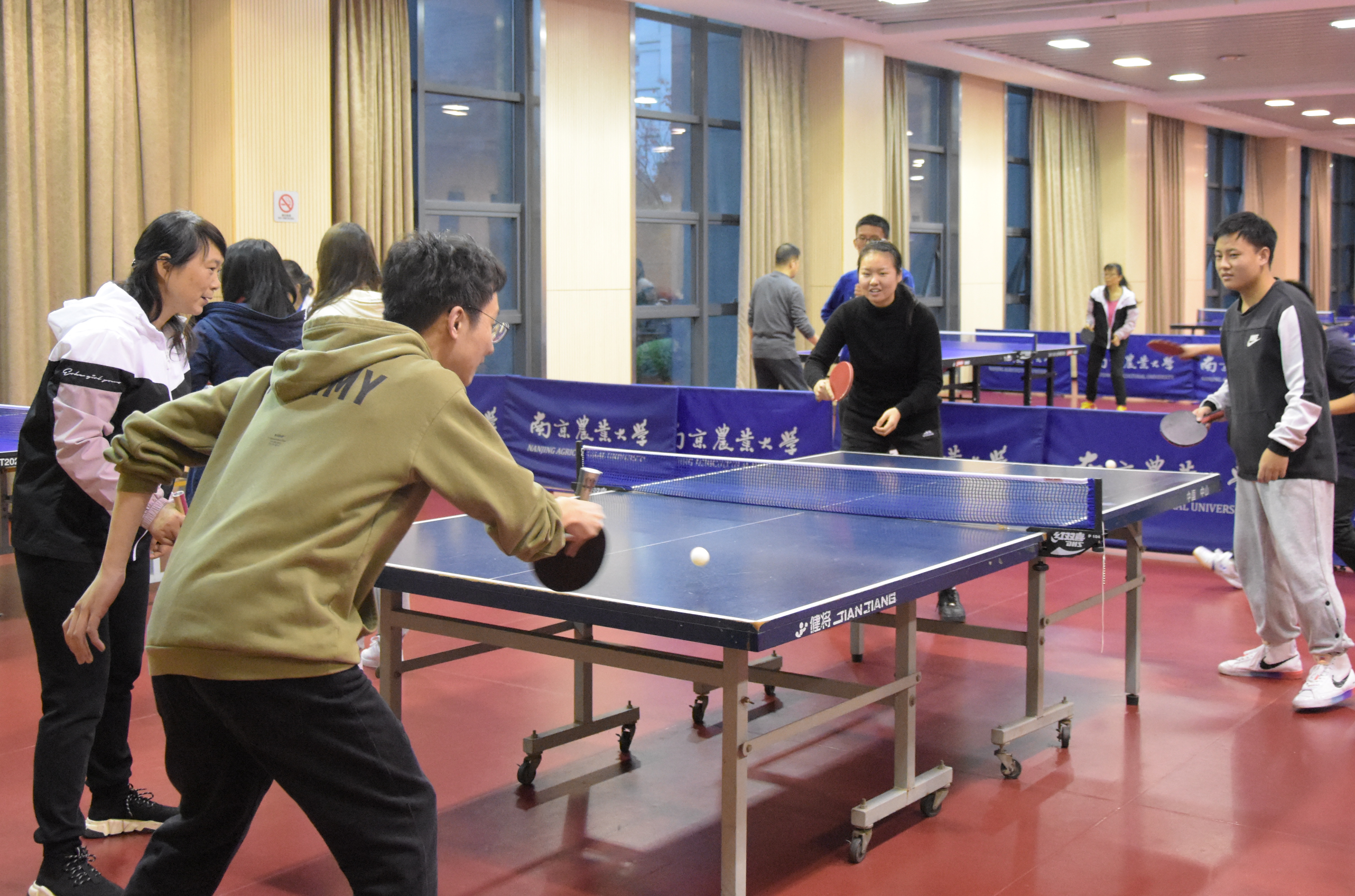 11月25日下午,新葡的京官网“语乒师生情”乒乓球联谊赛于我校体育中心乒乓球馆举行。新葡的京官网师生共计36人参加了本次活动。比赛分为个人赛和团体赛。个人赛分为男子单打和女子单打。团体赛共六个小组,每个小组分为六个师生混合小组。