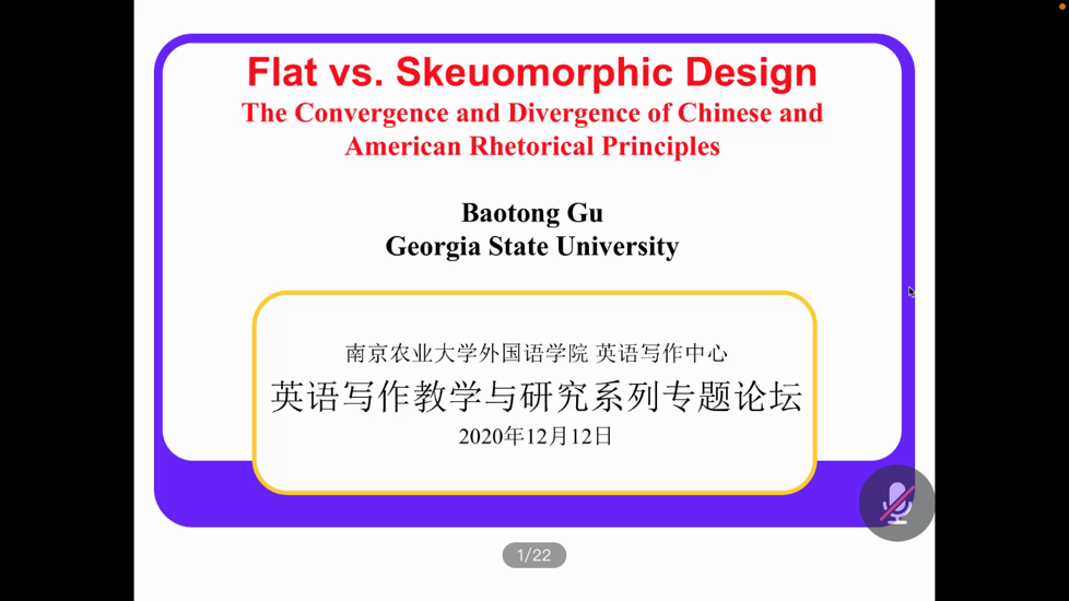 此次论坛首先由顾宝桐教授做主旨报告,题为“Flat vs Skeumorphic Design in Technical Writing: The Divergence and Convergence of American and Chinese Rhetorical Principles”。顾宝桐教授分析了技术写作中的化设计和拟物化设计的优劣及应用场景,详细解读了中美两国文化下不同的修辞学特点。