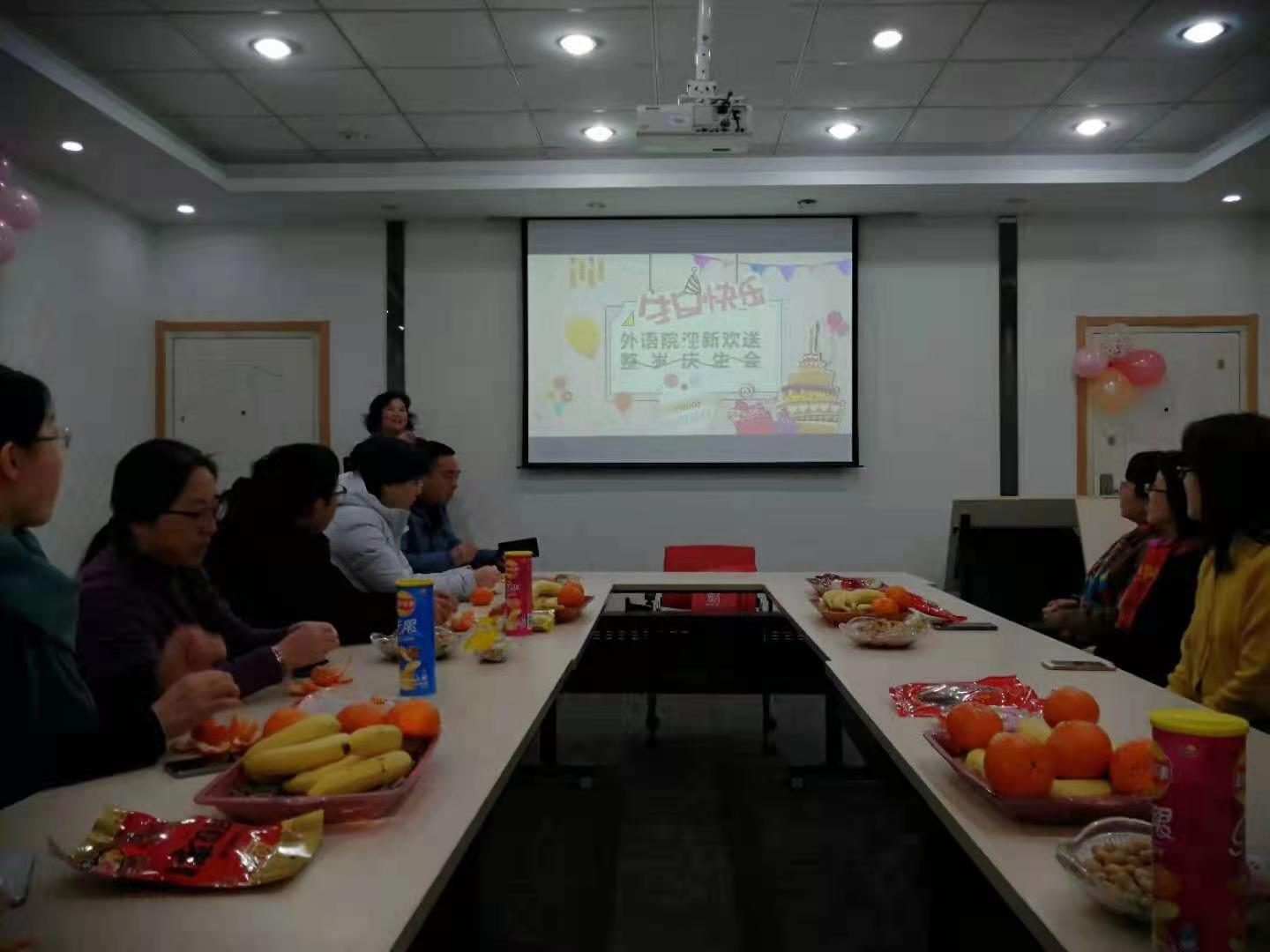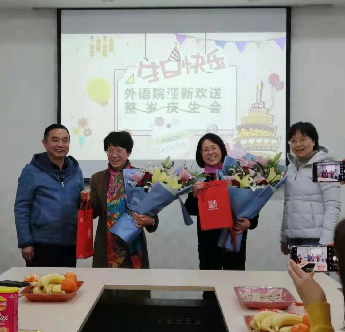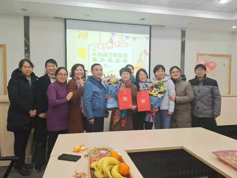 12月4日下午,3003新葡的京集团网址工会在A310室举办2020年度教职工迎新与荣休仪式,荣休教师何淑琴、张友琴,新进教师刘雪琴、杨艳霞、秦曦、沈春花参加了仪式,同时,学院工会还为王歆、鲍彦、李维、王婷婷和许乐五位老师举办了整岁庆生会。学院党委书记朱筱玉、副院长曹新宇和游衣明分别致辞,他们对荣休老师们为学校学院做出的突出贡献表示了感谢,并对新进教师们表示了热烈欢迎。大家一同观赏学院为两位荣休教师精心制作的电子相册,共忆一起度过的美好时光,部分老师还用歌声表达了对各位老师的祝福,郭凡的《祝寿歌》高亢隽永、王歆的《友谊地久天长》情意绵长;金锦珠的《金达莱花》热情奔放、邓丽霞的《樱花》情深意切,大家同唱生日歌,品尝甜美蛋糕,深情诠释着外语一家亲。
