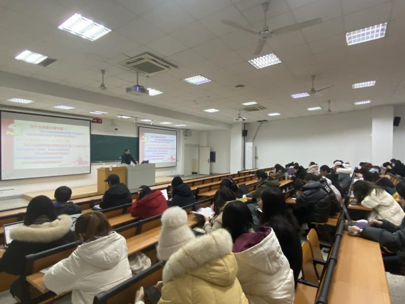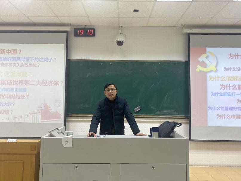 1月8日晚7点,新葡的京官网党委书记朱筱玉于教学楼C301为新葡的京官网全体大一学生做了题为“中国共产党为什么能——100年历程与启示”的主题党课教育,带领同学们深入学习中国共产党百年发展史。