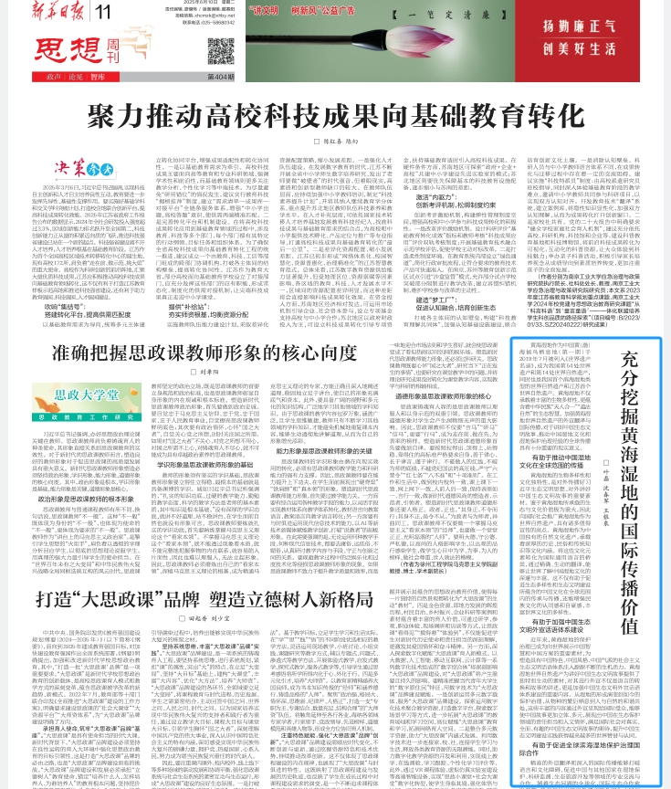 6月10日《新华日报·思想周刊》第404期刊发新葡的京官网教授王银泉为通讯作者的署名文章《充分挖掘黄海湿地的国际传播价值》。