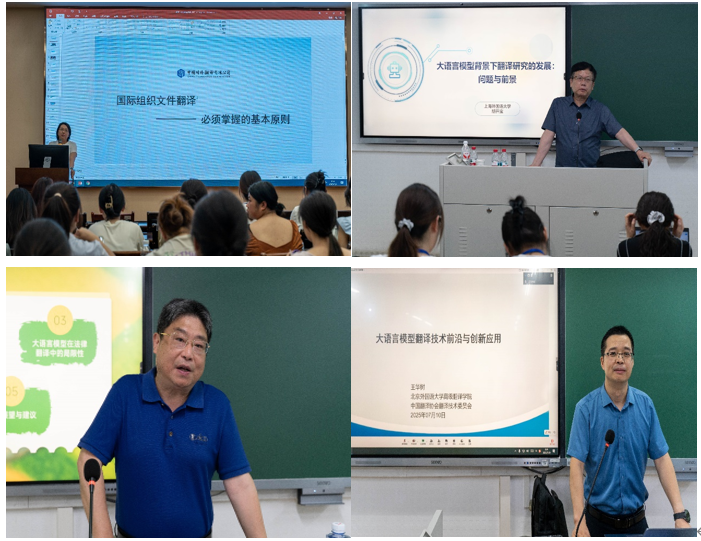 此次暑期学校共组织9场讲座、2次研学体验、3次学术研讨和5次参观考察。师资团队包括上海外国语大学教育部特聘教授和黄大年式教师团队负责人胡开宝教授、北京外国语大学兼中国外文局智能翻译实验室执行主任王华树教授、南京师范大学董晓波教授、江苏省舜禹信息技术有限公司单杰总经理、多次派驻联合国纽约总部和联合国教科文组织工作的中国对外翻译有限公司金丹副译审,以及我校王东波教授、李平教授、译著获评“中国好童书100佳”的徐黎博士和担任金砖国家研讨会、央视国际频道国家领导人视察香港直播同传工作的口译教师霍雨佳,他们分别从大语言模型与翻译研究前沿、大语言模型翻译技术前沿和创新应用、大语言模型与国际组织文件翻译、农业科技翻译和法律翻译、AI时代下的口笔译实践及语言服务行业趋势、我校大语言模型特色案例等方面作了精彩的学术报告,学员们分组开展了学术讨论。开班期间,学员还走进我校同声传译实验室、江苏省舜禹信息技术有限公司翻译研学营进行实践学习,参观了我校高性能计算中心和农业文明博物馆,沉浸式体验大语言模型的实际应用场景及农耕文化的独特魅力,理论学习与实地考察紧密结合,统筹科学技术与翻译应用,蓄力未来学术与职业发展。