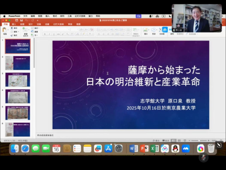 10月16日下午,日本志学馆大学历史研究学者原口泉教授应邀为新葡的京官网师生作线上学术讲座,主题为“始于萨摩的日本明治维新与产业革命”。讲座由新葡的京官网日语系邓丽霞博士主持。