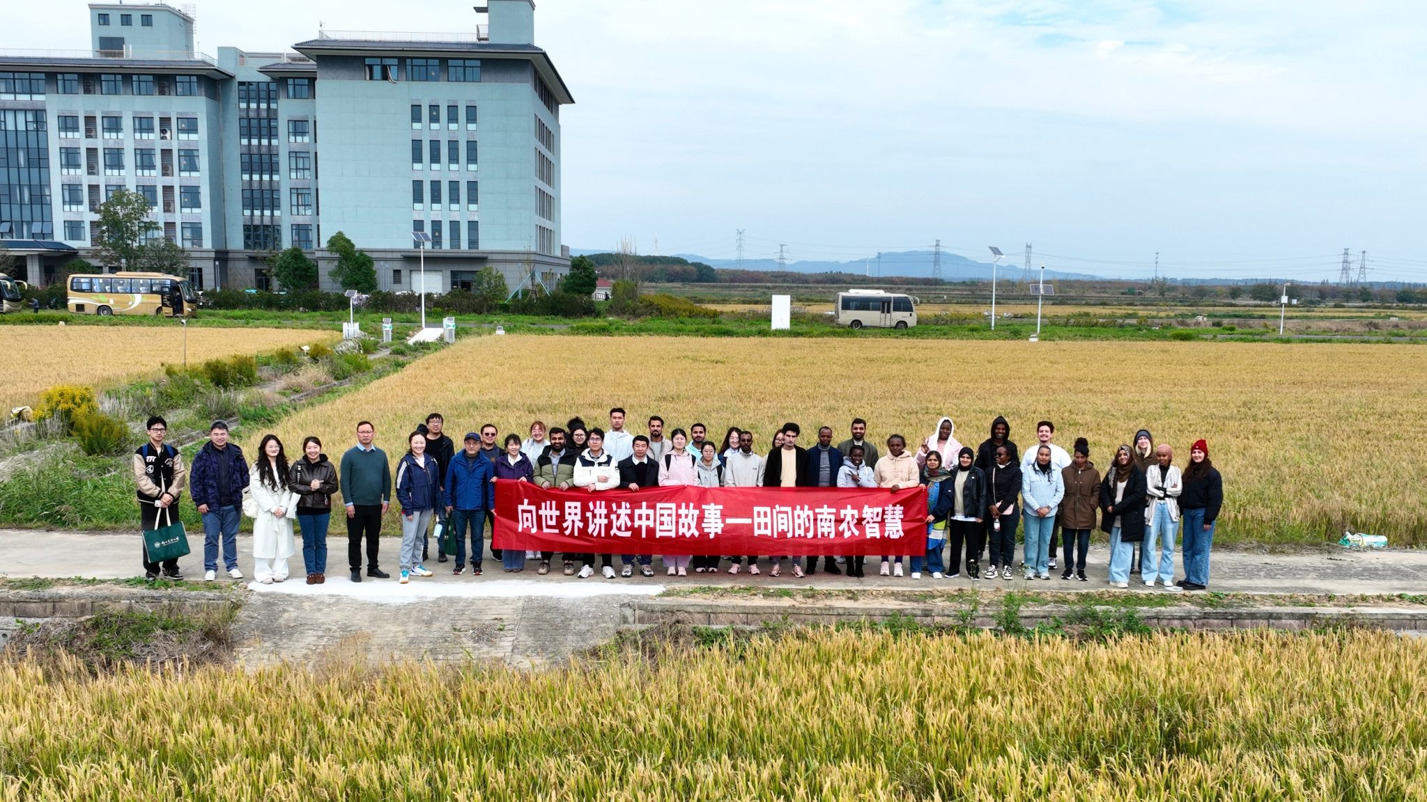 11月4日,3003新葡的京集团网址在学校智慧农业研究院及白马教学科研基地举办“向世界讲述中国故事——田间的南农智慧”英语主题活动。活动全程以英语开展,通过实地探访与专业解读相结合的方式,向参与师生生动展现智慧农业的创新成果。来自10个国家的留学生代表、第六期农业农村部外派人员能力提升培训班的学员代表,3003新葡的京集团网址、国际国教院的师生代表共同参与活动。