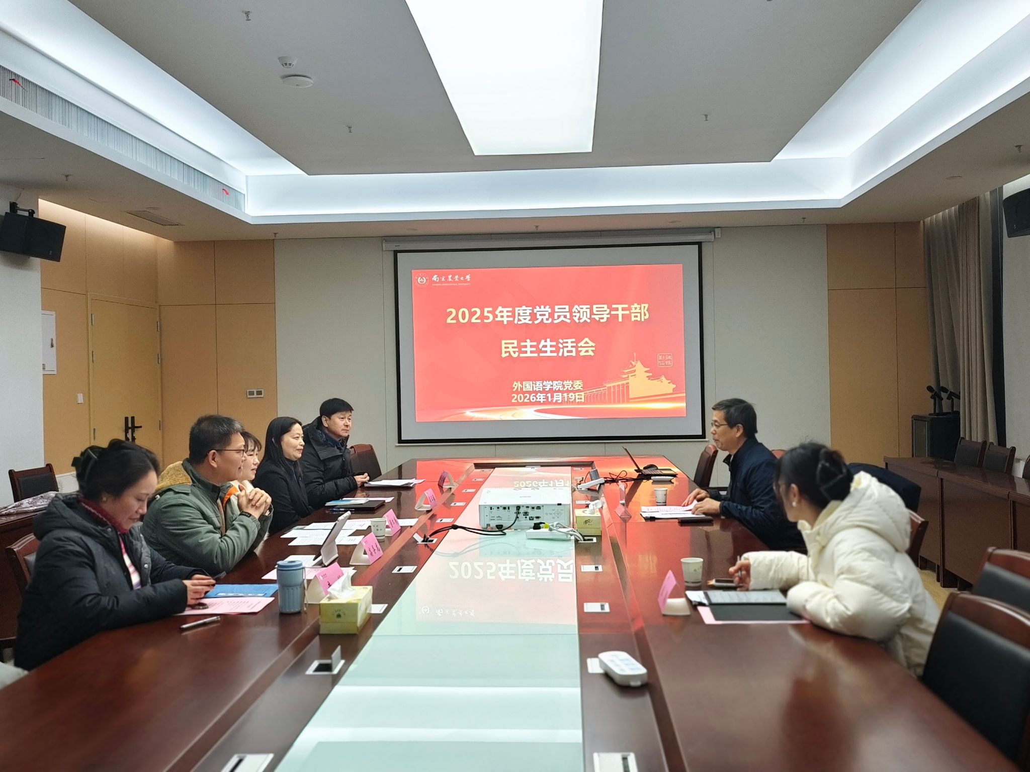 1月19日下午,新葡的京官网在滨江校区智慧农业学院863会议室召开2025年度党员领导干部民主生活会。校党委常委、副校长王源超出席民主生活会,前沿交叉研究院纪检委员、副书记盛馨、学院班子全体成员、学院组织员和党务秘书参加会议,民主生活会由学院党委书记董红梅主持。