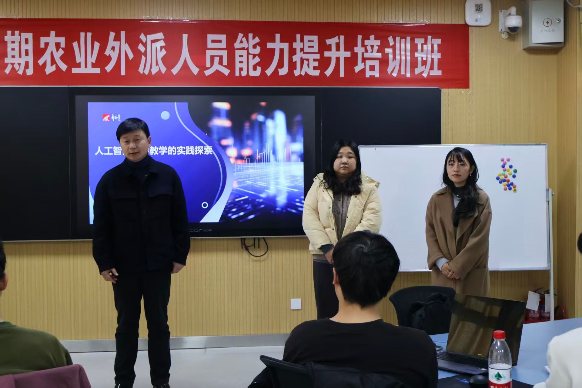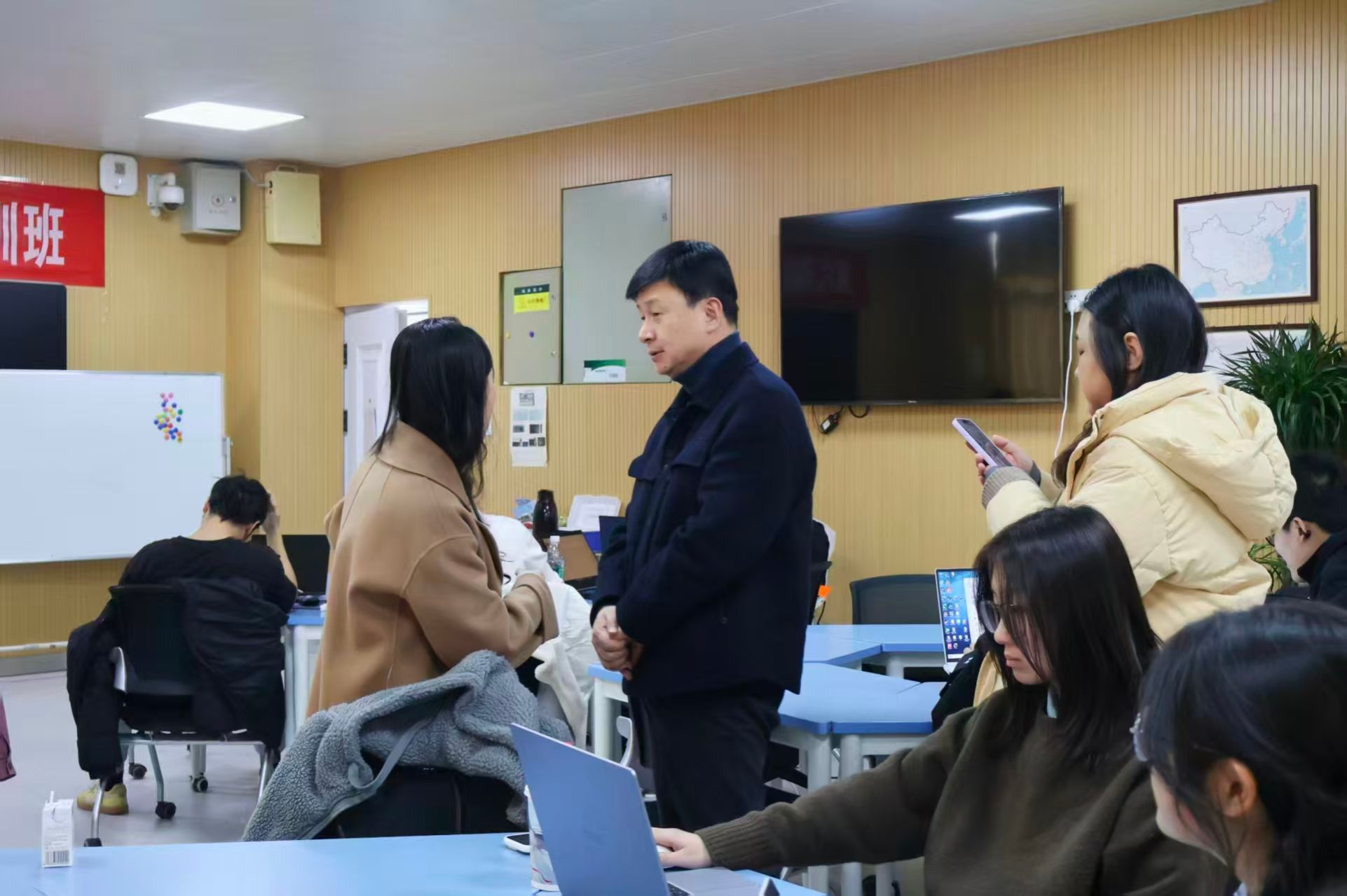 1月16日,3003新葡的京集团网址实践周“超星公司入校培训实习”在教学楼A621有序开展。3003新葡的京集团网址副院长马秀鹏、日语系主任陈海涛、教学秘书胡頔专程前往培训现场,走访了解实习进展,亲切慰问参与实习的师生与企业导师,深入调研实践教学成效。