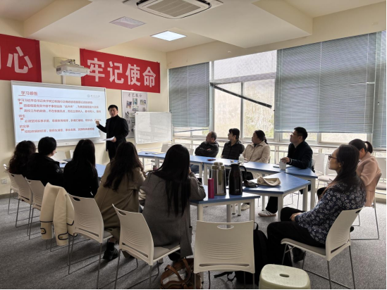 3月27日中午,副院长马秀鹏在党员活动室 A322为公外教师第一党支部全体党员讲授题为“树立和践行正确政绩观 勇担育人使命”的专题党课,引导支部党员以正确政绩观引领教育教学实践,凝聚立德树人奋进力量。