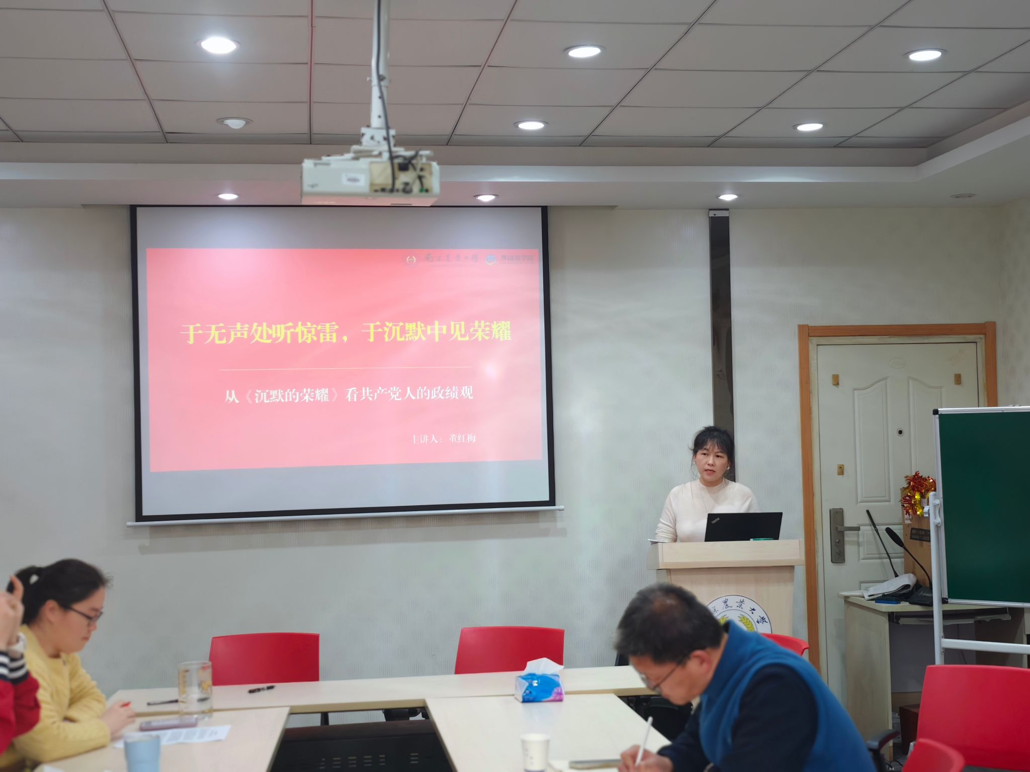 4月1日下午,学院办公室党支部在教学楼A310开展专题党课学习暨党日活动。学院党委书记董红梅主讲了《于无声处听惊雷,于沉默中见荣耀——从〈沉默的荣耀〉看共产党人的政绩观》党课。支部全体党员参加学习。