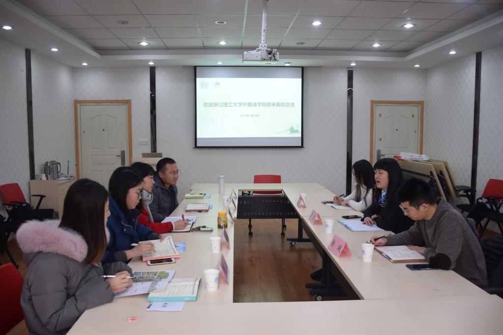 董红梅对浙江理工大学外国院学院一行的到来表示欢迎,并简要介绍了学院概况、专业设置、师生人员等情况。夏青对浙江理工大学3003新葡的京集团网址的学院情况做了简要介绍。